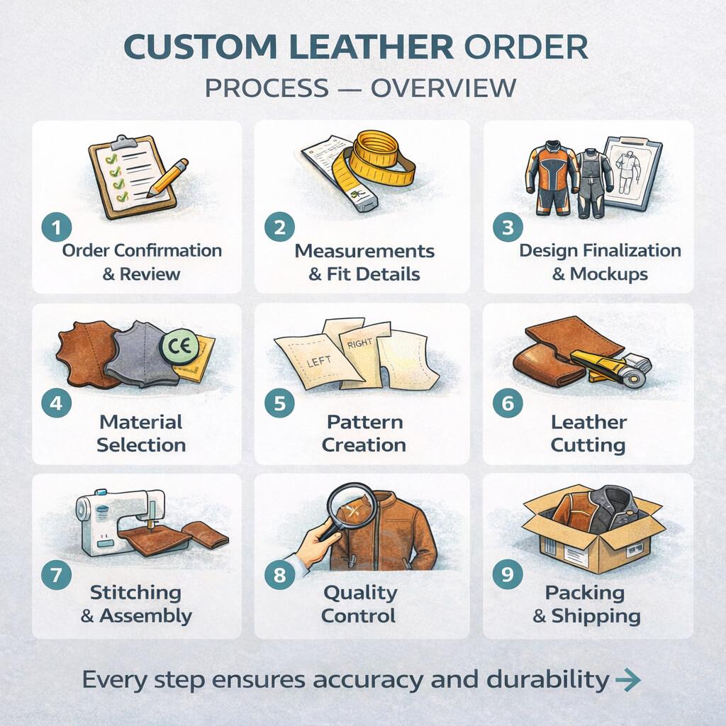 I often hear the same question from customers: “What actually happens after I place a custom leather order?” It’s a fair question. Custom gear feels personal, and you want to know exactly how your jacket or suit comes to life.