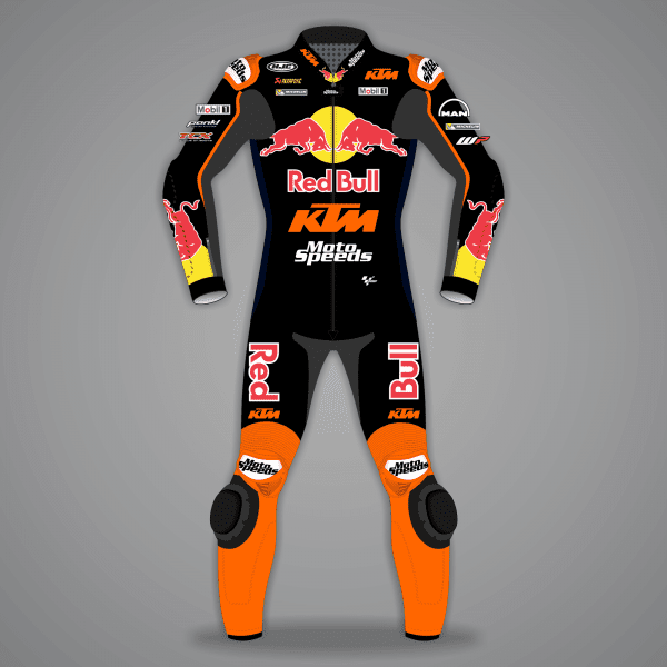 The KTM Rider Suit worn by Brad Binder embodies the perfect mix of style, comfort, and safety. Designed for serious riders, this suit offers unmatched protection and flexibility, making every ride exhilarating. With top-quality leather and advanced safety features, it ensures you're secure while looking tough on the track.