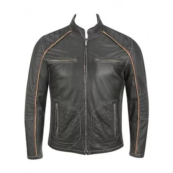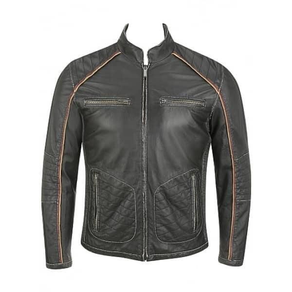 - Style / Design Features: Contrast piping; casual leather jacket with biker-inspired details