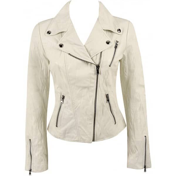 White Leather Jacket for Women