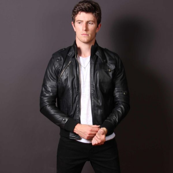 Crafted from genuine soft Italian sheepskin, the Dakota Bomber jacket for men receives a wash and deep wax finish for a timeless bomber look. This men's leather outerwear features a double-layer ribbed collar with stud fastening and shoulder epaulets, a front metal zip closure, and four front zipped pockets with studs. Ribbed waist and cuffs complete the classic silhouette.