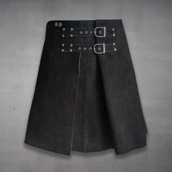 - Style / Design Features: Gladiator/warrior aesthetic; leather and hardware accents; kilt silhouette with front strap buckles