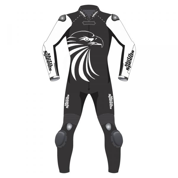 - Aerodynamically sculpted racing speed hump adds back protection, contributing to a track-ready leather riding suit profile.