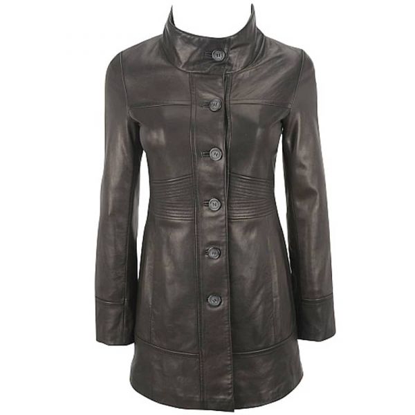 Outer Shell- Genuine leather outer shell (0.9 - 1.0 mm) delivers durable, 3/4 length leather coat styling for women's outerwear.