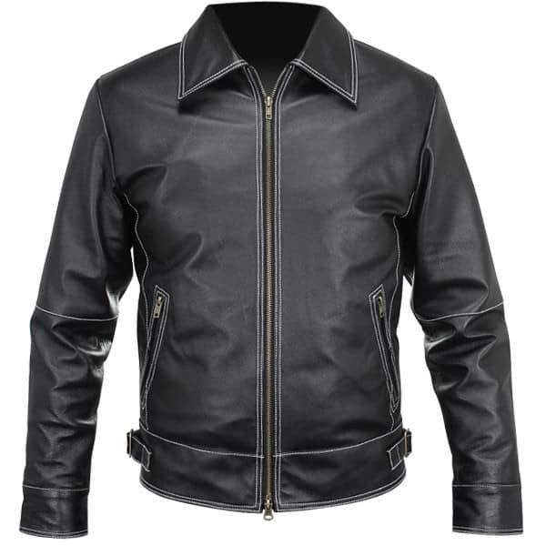White Stitches Matte Leather Jacket For Men