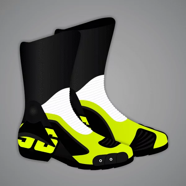 - Integrated ankle protection and a shift plate for secure control during MotoGP racing and track riding.