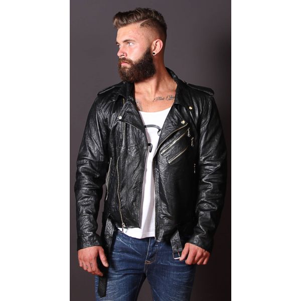 - Category: Biker-style leather jacket for men